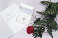Ideal arrangement for a centerpiece. Uses a rectangular white platter, where several elements are placed in this order: small pieces of moss, a branch of small and delicate white flowers, eggs, moss, green branches with ribbons and, lastly, a white rabbit-shaped plaque.